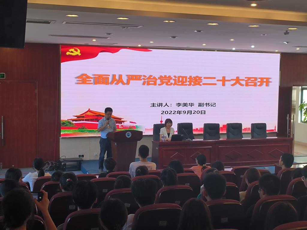 2022年9月20日下午,校黨委李美華副書記在實訓(xùn)樓四樓報告廳以“全面從嚴(yán)治黨迎接二十大召開”為題為藥學(xué)院22級藥經(jīng)管301-302班學(xué)生講授“開學(xué)第一課”。