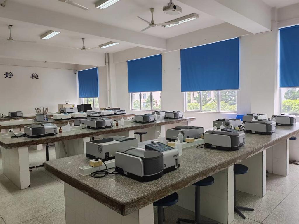 紫外可見分光光度計室面積119平方米,實訓室工位48個。固定資產(chǎn)54余萬元。主要儀器普析T6新世紀紫外可見分光光度計。本實訓室主要承擔《分析化學》、《檢驗應用化學》、《藥物分析技術(shù)》、《藥用化學基礎(chǔ)》、《儀器分析技術(shù)》、《中藥制劑檢測技術(shù)》等課程實訓教學任務。紫外可見分光光度計室主要服務于藥學、中藥學、藥品質(zhì)量與安全、醫(yī)學檢驗、藥品生產(chǎn)技術(shù)、藥品經(jīng)營與管理、食品檢驗檢測技術(shù)等專業(yè)的學生,以培養(yǎng)學生利用紫外分光光度法進行分析檢測操作為主要內(nèi)容。通過實訓,使學生能達到熟練掌握紫外可見分光光度計的操作,學會利用紫外可見分光光度計對藥物進行鑒別、含量測定等檢測任務。
