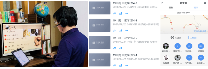 教研室主任何舒瀾老師任課的《中藥學(xué)》理論性強(qiáng),課前他發(fā)布在線教學(xué)程序與預(yù)習(xí)視頻,讓學(xué)生利用業(yè)余時間先熟悉課程,課中教師通過“電腦、iPad1+1”掌控教學(xué)全過程,電腦進(jìn)行直播,通過共享屏幕播放PPT剖析重難點,iPad實時接收學(xué)生提問,及時解答學(xué)生提出的問題,課后“學(xué)習(xí)通”布置作業(yè),檢驗學(xué)生聽課效果。這樣的在線教學(xué)方式,不僅授課環(huán)節(jié)完整,教學(xué)質(zhì)量良好,而且還實現(xiàn)了“學(xué)生實時發(fā)問,教師及時回答”的良好互動,直播回放的功能也為學(xué)生課后回看不易理解的知識點提供便利,表現(xiàn)出在線教學(xué)的優(yōu)勢。