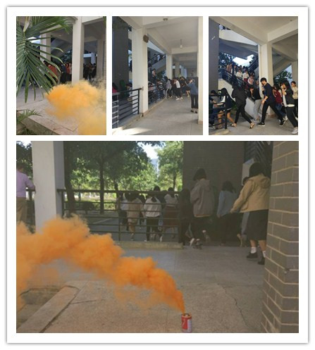 “嗚……嗚……”一陣刺耳的哨音驟然響起,全體學(xué)生收到“立即撤離”的指令后用衣物、手帕等捂住口鼻,彎著腰,貓著步,快速、有序、安全地疏散到操場(chǎng)指定地點(diǎn),相關(guān)工作人員迅速清點(diǎn)人數(shù),并向現(xiàn)場(chǎng)指揮部報(bào)告,500多名學(xué)生的整個(gè)疏散過(guò)程僅用了1分15秒。
