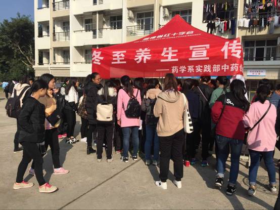 為了讓同學(xué)們更好的了解冬至節(jié)氣,更為了讓中藥創(chuàng)業(yè)基地的同學(xué)提高創(chuàng)新創(chuàng)業(yè)能力,發(fā)揮專業(yè)特長,藥學(xué)系實(shí)踐部中藥創(chuàng)業(yè)基地于2015年12月28日上午在學(xué)院第一餐廳門口舉辦“冬至養(yǎng)生”創(chuàng)業(yè)實(shí)踐活動(dòng)。