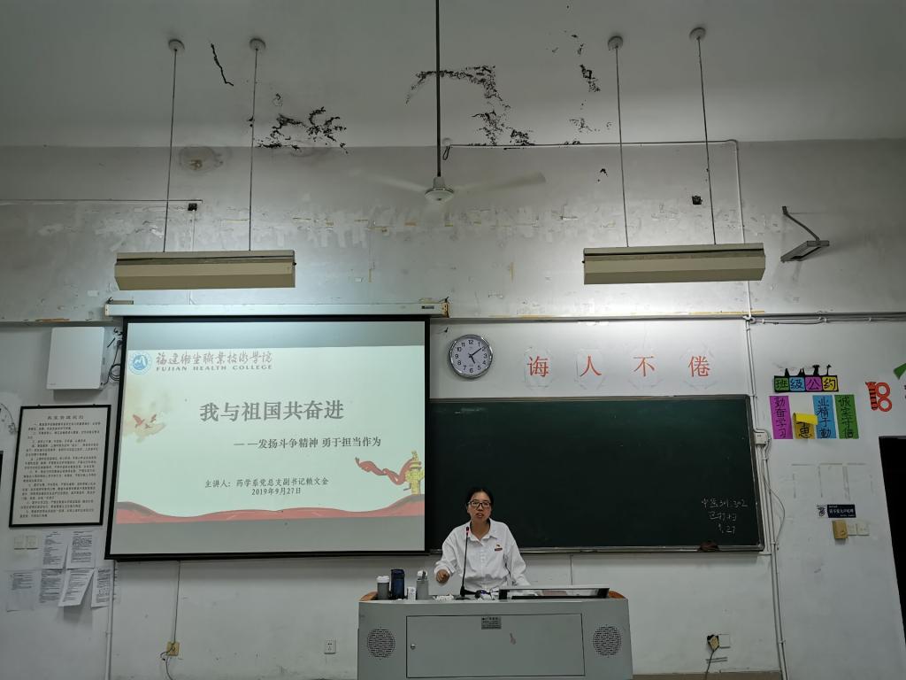 為培養(yǎng)學(xué)生干部的責(zé)任與擔(dān)當(dāng)意識(shí),提高學(xué)生干部的政治素養(yǎng)和工作能力,9月27日,藥學(xué)系黨總支副書記賴文金老師在藥學(xué)系二階為兩委會(huì)成員及各班級(jí)班團(tuán)干部90余人講授“我與祖國(guó)共奮進(jìn)”專題團(tuán)課。