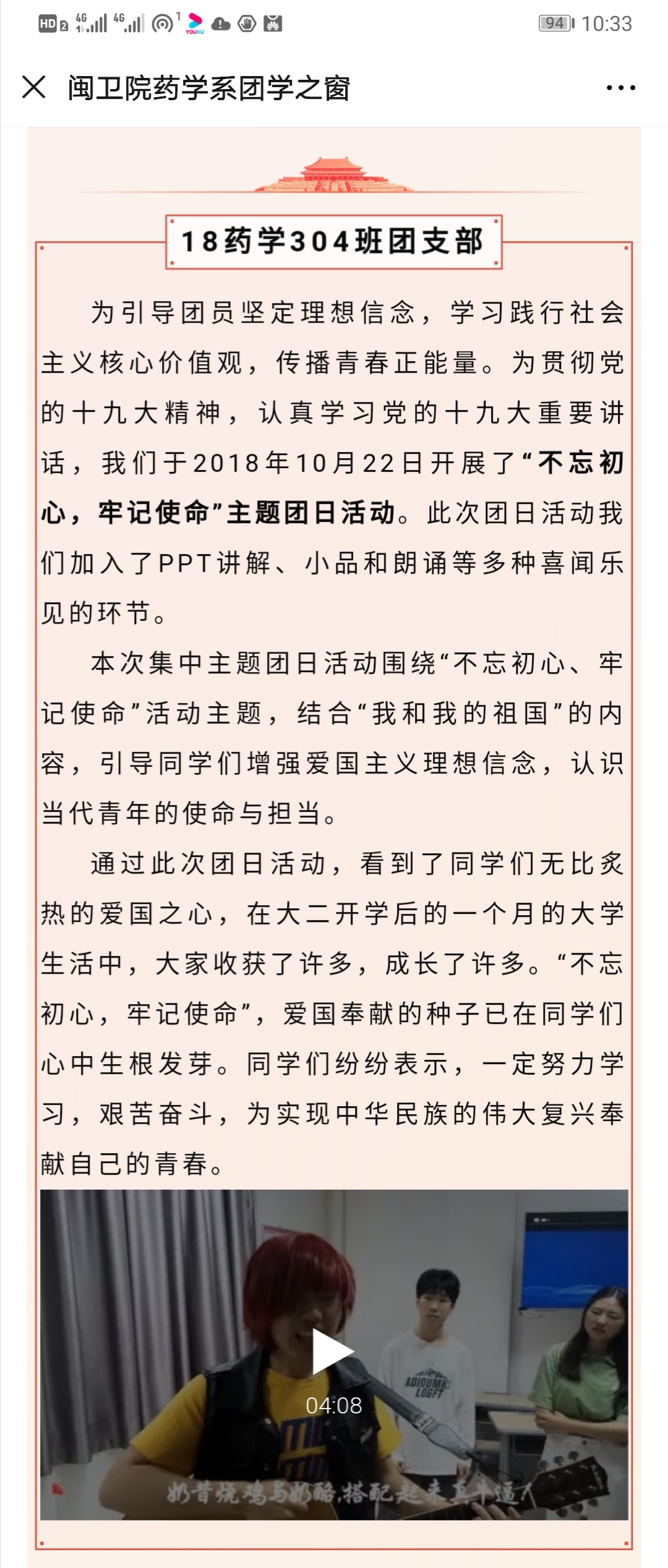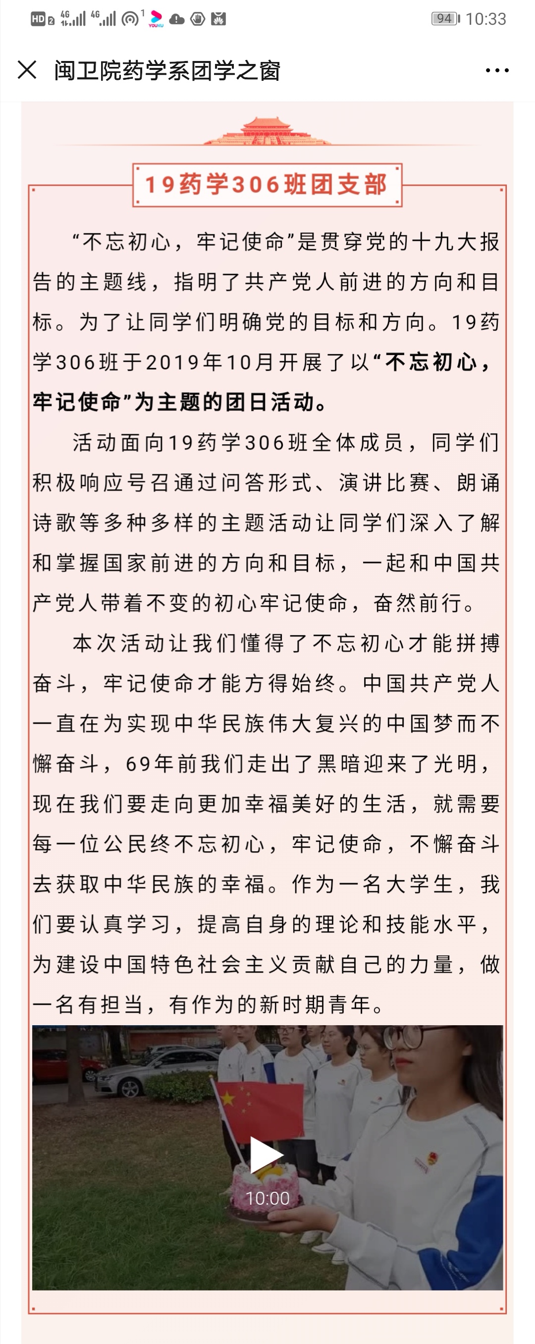 藥學(xué)系舉辦“不忘初心、牢記使命”系列團日活動