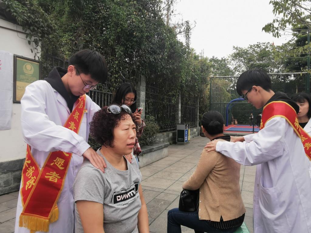 當(dāng)天上午,學(xué)生志愿者們早早來到左海公園門口,布置現(xiàn)場并擺好所需器材,準(zhǔn)備迎接社區(qū)居民的到來。此次活動(dòng)有量血壓、測血糖、急救知識(shí)宣講與演示、按摩拔罐等義診項(xiàng)目?;顒?dòng)開始不久,排隊(duì)居民就絡(luò)繹不絕。志愿者們認(rèn)真、熱情地為每一位居民朋友提供義診服務(wù),并對居民咨詢的問題一一給予解答。同時(shí),還提醒前來義診的老年人要定期進(jìn)行體檢,鼓勵(lì)他們要樹立積極樂觀的生活態(tài)度,對部分存在亞健康的年輕人建議要規(guī)律作息時(shí)間,合理搭配飲食,養(yǎng)成健康的生活習(xí)慣。