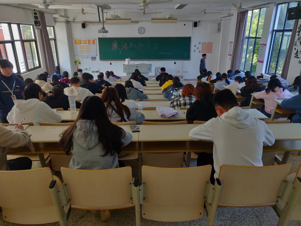 為進一步推進黨風廉政教育工作,引導藥學系學生樹立正確的理想信念,我系于2019年11月19日中午在教室314、315進行廉潔知識競賽,各班級團支部委員到場參加。