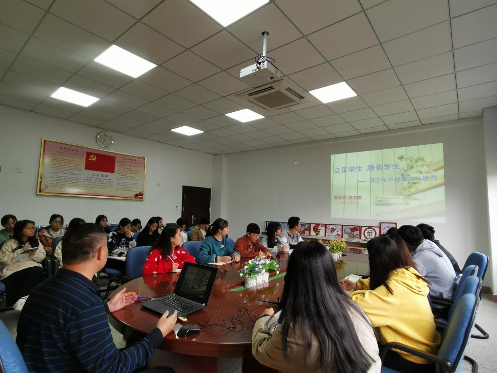 為進一步加強我系學生會干部隊伍建設,增強隊伍凝聚力、執(zhí)行力,提升學生干部自身素質(zhì),2019年11月27日,藥學系黨總支鄭力宏書記于系部會議室為27名團學干部講授主題為“立足學生,服務學生——學生干部應具備的能力與素質(zhì)”的專題講座。