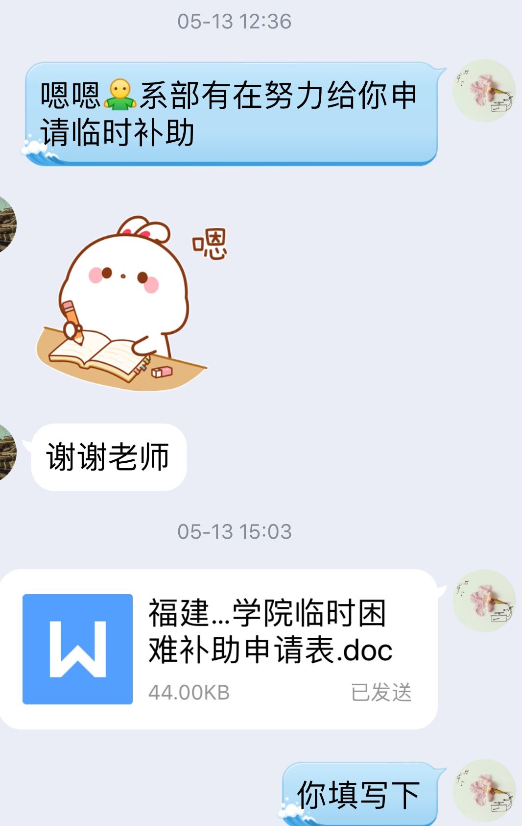 我系一名19級藏族學(xué)生在5月13日主動和輔導(dǎo)員匯報,所居住地(西藏林芝市工布江達縣江達鄉(xiāng)金村)電線壞了導(dǎo)致停電,維修預(yù)計需要近一個月時間。學(xué)生焦慮近一個月無法上網(wǎng)課。輔導(dǎo)員安慰學(xué)生、并電話學(xué)生家長進一步確認(rèn)情況,得知因疫情影響家里父母無法外出工作,家里無經(jīng)濟來源。藥學(xué)系領(lǐng)導(dǎo)高度重視,積極主動為學(xué)生提供幫助。在學(xué)院相關(guān)部門大力支持下,按學(xué)院相關(guān)資助文件,向?qū)W生發(fā)放疫情防控專項臨時補助,幫助學(xué)生渡過難關(guān)。為解決學(xué)生停電期間學(xué)習(xí)困難問題,輔導(dǎo)員與任課老師溝通,提前在線發(fā)送或線下郵寄給學(xué)生相關(guān)學(xué)習(xí)材料,讓學(xué)生停電不停學(xué);并讓班級班干部協(xié)助學(xué)生,予以相應(yīng)學(xué)業(yè)幫扶等。