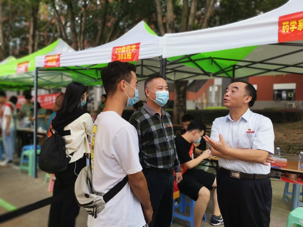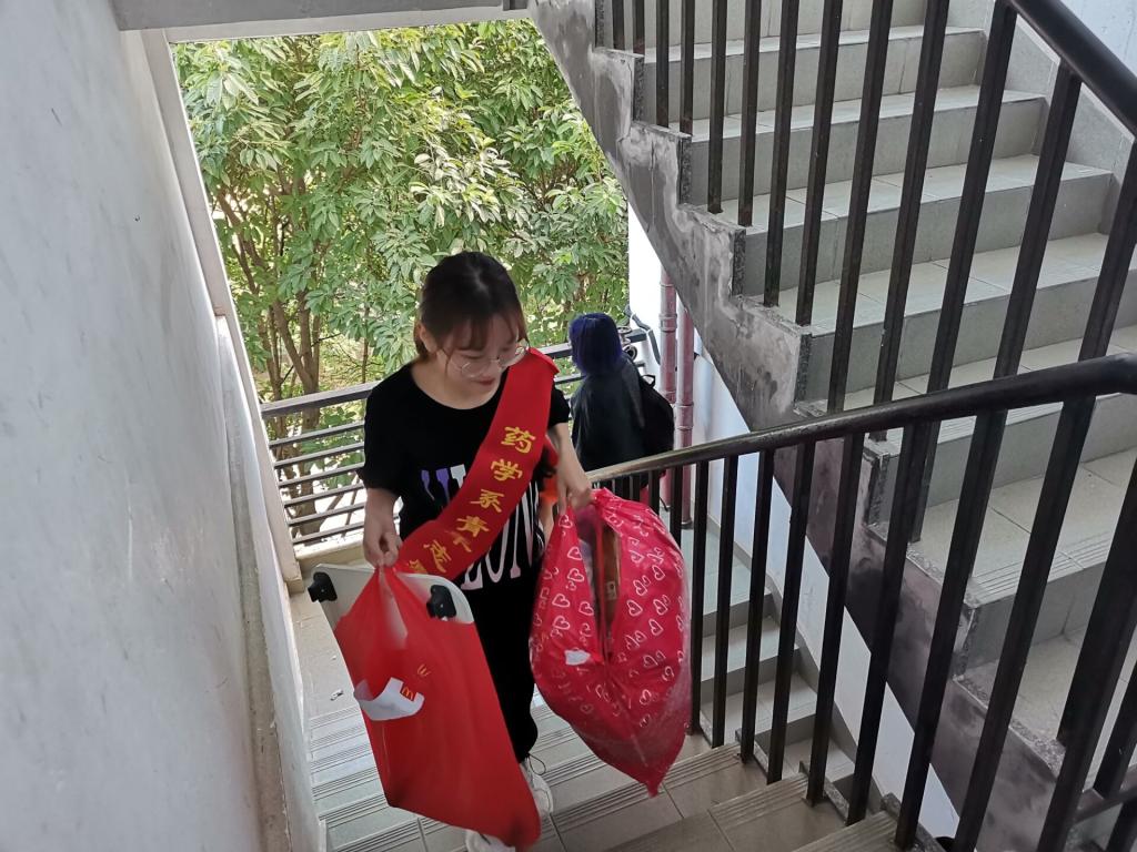 根據(jù)疫情防控的要求,新生家長及陪同人員不得進(jìn)入校區(qū)內(nèi),藥學(xué)系團(tuán)總支組織了300多名青年志愿者熱情地組織新生有序入場辦理報(bào)到手續(xù)、幫助新生搬運(yùn)行李至宿舍。學(xué)院紀(jì)委游鋒書記、藥學(xué)系黨總支鄭力宏書記、肖健副主任、李泳寧副主任、黨總支賴文金副書記和新生班輔導(dǎo)員一同走訪迎新點(diǎn)和2020級新生宿舍,他們詳細(xì)詢問新生報(bào)到情況,并與新生親切交談,為新生介紹學(xué)校和系部情況,耐心地解答新生們提出的各種疑問,勉勵(lì)同學(xué)們盡快轉(zhuǎn)變角色,以嶄新的面貌投入到大學(xué)生活當(dāng)中,努力做到學(xué)有所成、學(xué)有所獲。