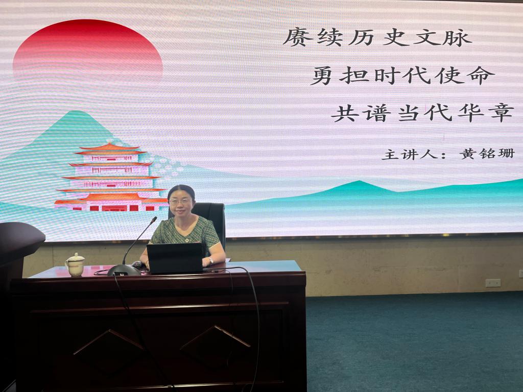 黃銘珊以福州的“城市會(huì)客廳”---三坊七巷導(dǎo)課,從“尋根溯源:凝聚悠久歷史 締造中華文化”、“培根鑄魂:堅(jiān)定文化自信 推動(dòng)文化繁榮”、“守正創(chuàng)新 :勇?lián)鷷r(shí)代使命 共譜青春華章”三個(gè)方面著手,深入闡述當(dāng)代青年堅(jiān)定文化自信,肩負(fù)起弘揚(yáng)優(yōu)秀傳統(tǒng)文化的時(shí)代使命的重要性。最后,黃銘珊立足學(xué)校實(shí)際,號(hào)召全體學(xué)生深耕校史、錘煉本領(lǐng)、勇?lián)姑?,譜寫更加絢爛多彩的青春華章。