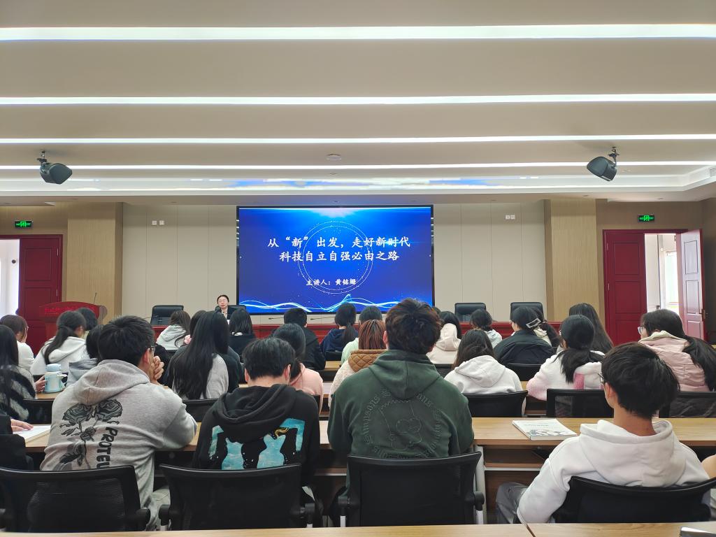 2024年3月20日,副校長黃銘珊在行政樓六樓會(huì)議室以“從‘新’出發(fā),走好新時(shí)代科技自立自強(qiáng)必由之路”為題為藥學(xué)院23藥產(chǎn)301班和22藥質(zhì)安301班學(xué)生講授“開學(xué)第一課”。
