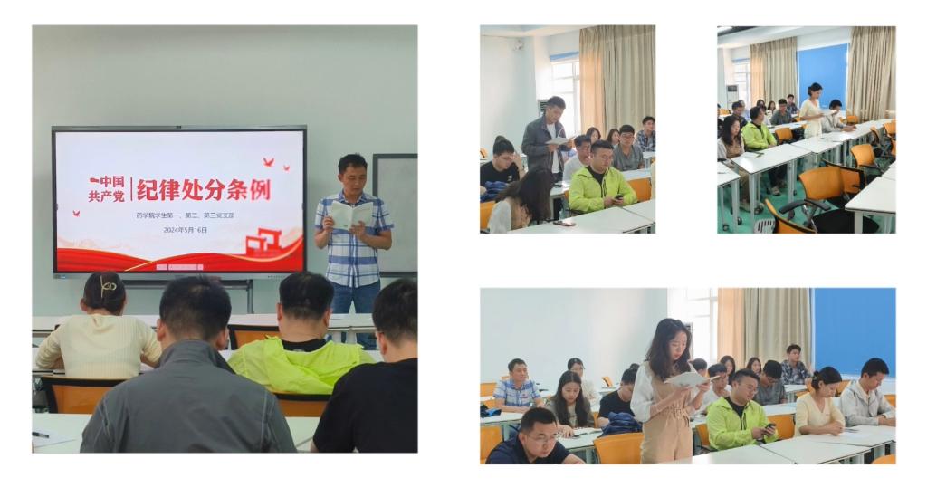 紀律是管黨治黨的“戒尺”,也是黨員、干部約束自身行為的標準和遵循。為深入學習貫徹新修訂的《中國共產黨紀律處分條例》,2024年5月16日,藥學院學生第一、二、三黨支部在藥學院501-3會議室開展黨紀學習教育。