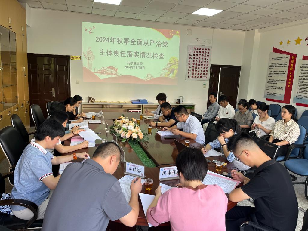 2024年11月5日,藥學(xué)院黨委在會(huì)議室召開(kāi)2024年秋季全面從嚴(yán)治黨主體責(zé)任落實(shí)情況檢查會(huì)。校黨委委員、黨委副書(shū)記李美華帶領(lǐng)第二檢查組成員到會(huì)指導(dǎo),藥學(xué)院黨委委員、各支部書(shū)記參加本次會(huì)議。