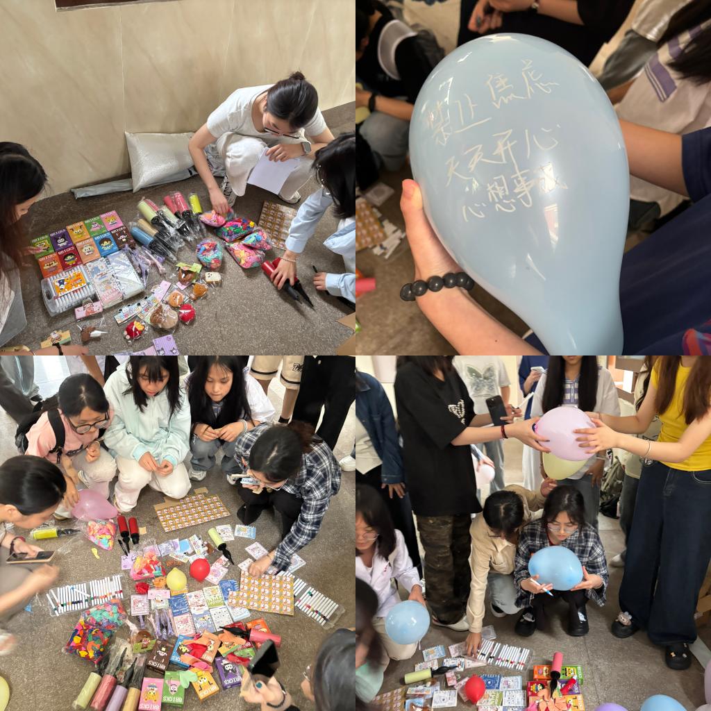 抽獎與分享環(huán)節(jié),更是溫暖與歡樂交織。同學們憑券挑選解壓玩具、文具等精美獎品,臉上洋溢著滿足的笑容。不少同學主動分享減壓感受,“踩氣球的時候,感覺所有的煩惱都被踩碎了”“把壓力寫下來,心里輕松多了”。