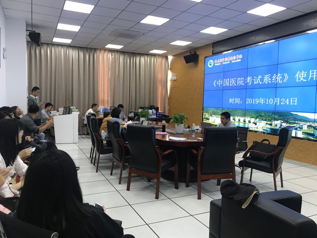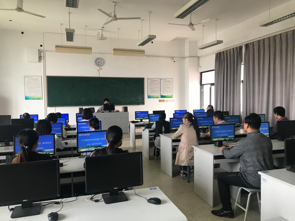 臨床醫(yī)學(xué)系新購進的《中國醫(yī)院考試系統(tǒng)》題庫初步安裝完畢,2019年10月24日上午組織全系專業(yè)教師及管理系國控專業(yè)教師分批在教學(xué)樓第5機房、可視化多媒體系統(tǒng)控制中心進行了兩場使用培訓(xùn)會。