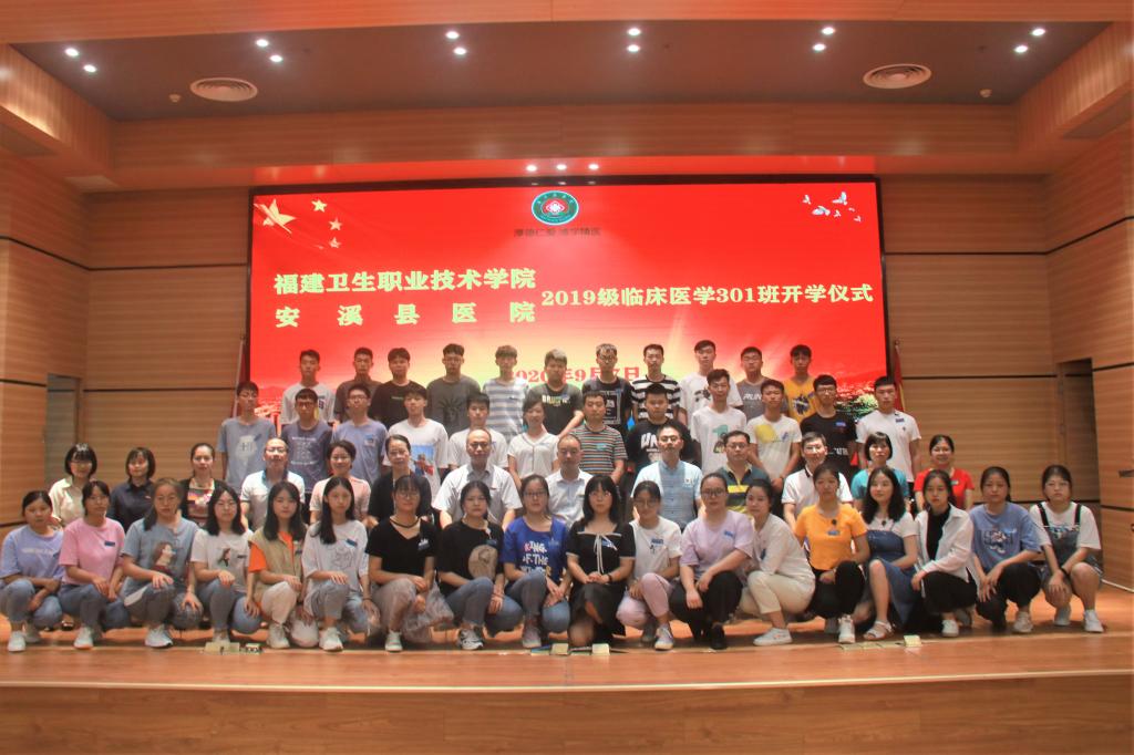 2020年9月7日,我系2019級臨床醫(yī)學301班在安溪縣醫(yī)院多功能廳舉行校企合作班的開班儀式,這是我院首次與安溪縣醫(yī)院開展的院校合作。我院院長許能鋒、副院長鄭翠紅、教務處處長朱扶蓉、臨床系主任郭禮堅、教務處副處長梁艷,安溪縣醫(yī)院陳鑫壇院長、相關職能科室負責人及2019級臨床301班學生參加。開班儀式由安溪縣醫(yī)院副院長劉朝陽主持。