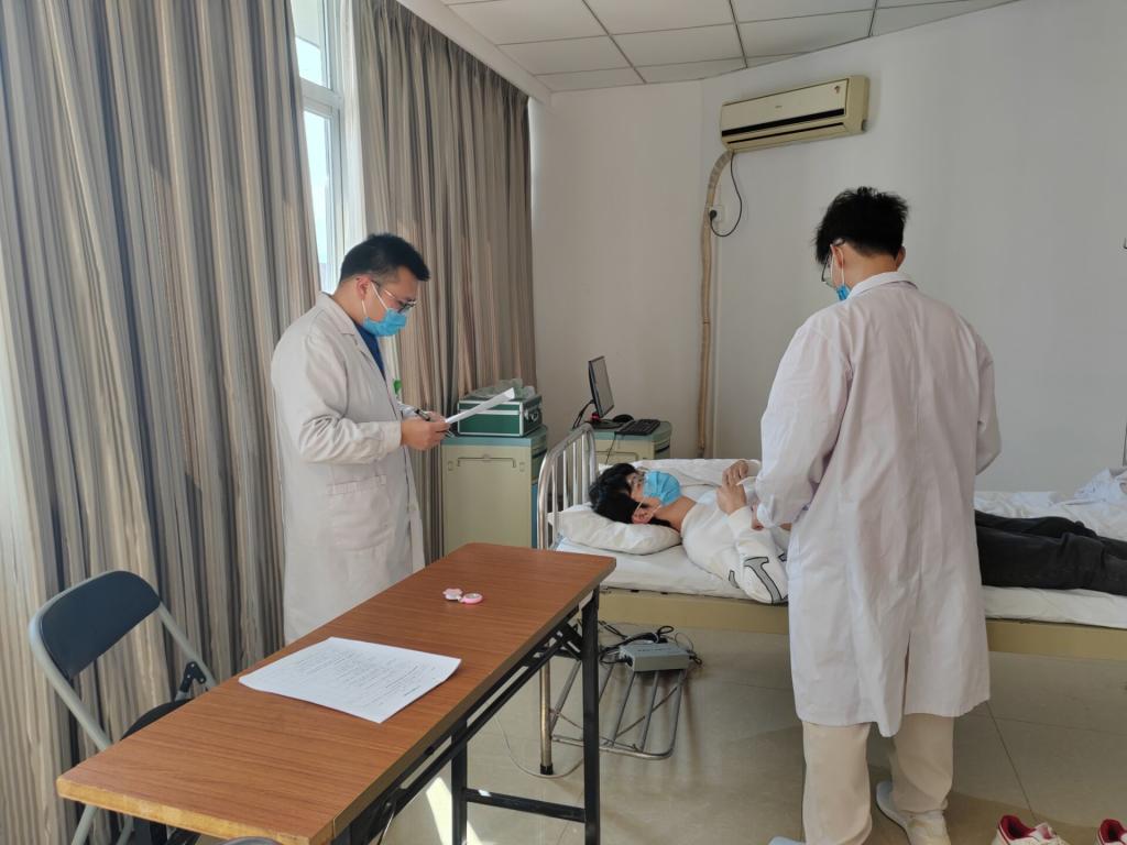 本次考核各單位進行了同質(zhì)化管理,內(nèi)容對接國家臨床執(zhí)業(yè)助理醫(yī)師資格考試大綱,使用統(tǒng)一技能考核試題庫和評分標準,考核內(nèi)容包括內(nèi)科、外科及婦兒科的綜合理論考核和實踐技能考核。綜合理論考核進一步加強學(xué)生對“三基”知識的理解,提高了臨床分析問題與解決問題的能力。實踐技能考核體格檢查環(huán)節(jié),考核過程中同學(xué)們采用實景模擬對話,施診前囑托確認,操作中進行手法細節(jié)講析;主考老師全程監(jiān)督,現(xiàn)場打分,并對同學(xué)們的不足之處予以耐心指導(dǎo)糾正,規(guī)范學(xué)生技能操作流程,提升學(xué)生臨床操作水平。