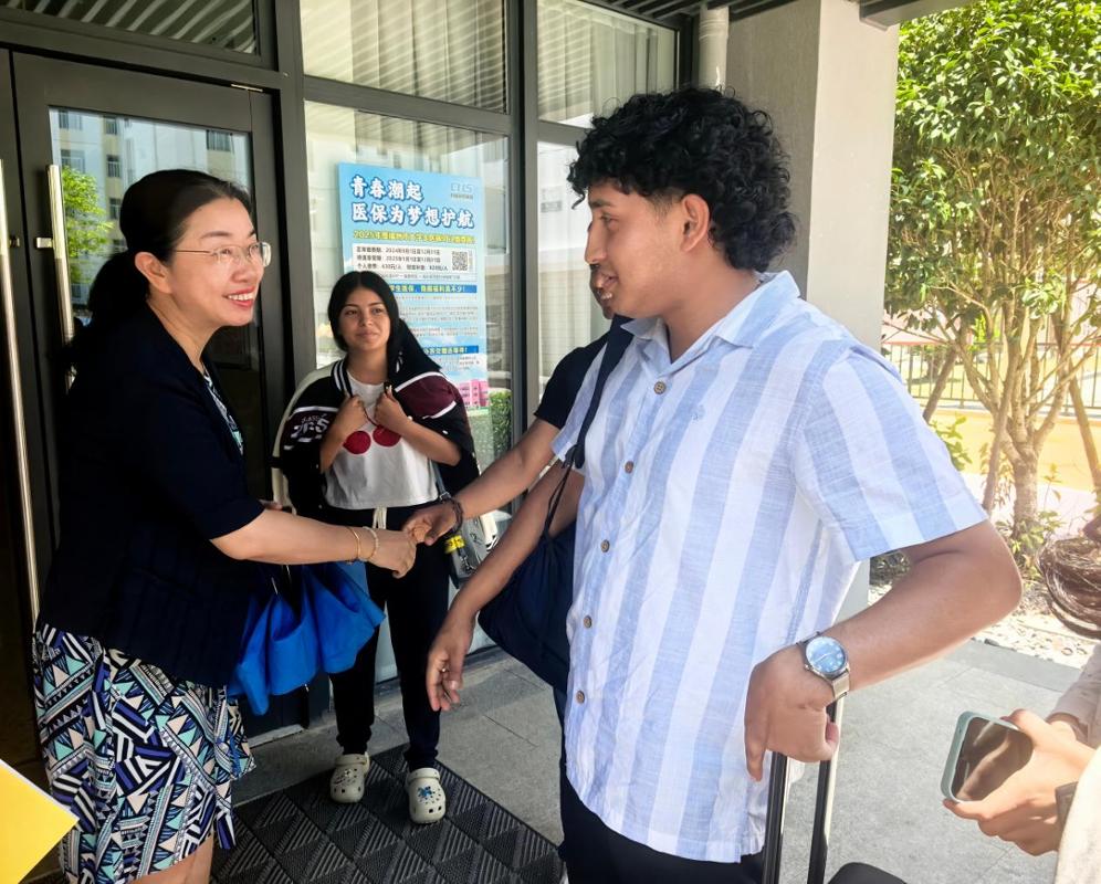 報到當天,黃銘珊副校長在宿舍歡迎留學生的到來,對他們入校相關工作進行悉心指導。醫(yī)學院相關工作人員陪同,為留學生提供了熱情周到的服務。從入學注冊、校園導覽到辦理校園卡、電話卡、銀行卡等,師生耐心解答每一個問題,幫助留學生迅速適應新環(huán)境。這些懷揣求學夢想的青年跨越重洋,為初秋的校園注入了鮮活的國際元素,也深切感受到學校的溫暖與包容。
