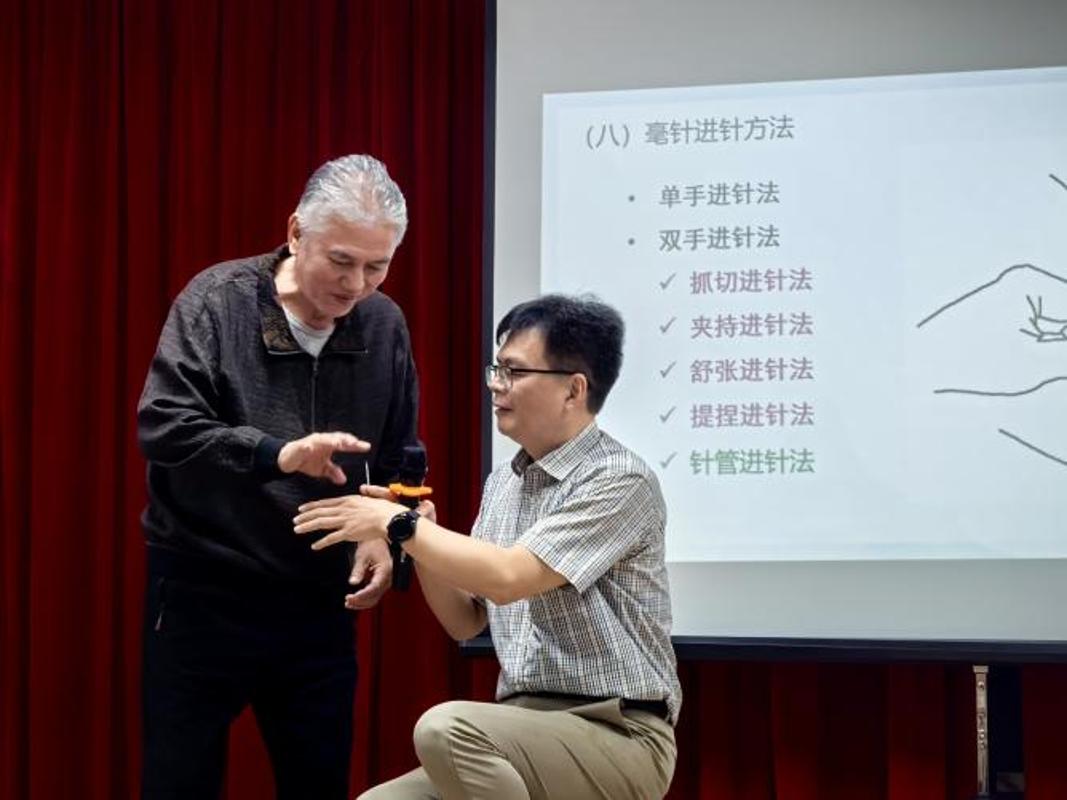 座談會后,代表團(tuán)為峇株巴轄當(dāng)?shù)孛癖娂爸嗅t(yī)從業(yè)者舉辦了中醫(yī)適宜技術(shù)實用技能培訓(xùn),內(nèi)容包括針刺、艾灸、拔罐、刮痧及關(guān)節(jié)康復(fù)功法等康復(fù)治療技術(shù)實操培訓(xùn),以及中醫(yī)藥美容技術(shù)與藥膳制作技術(shù)理論教學(xué)指導(dǎo)。培訓(xùn)采取“理論+實操”相結(jié)合的方式,并融入中方“三伏灸”、“八段錦”等成功案例及馬來西亞基層醫(yī)療實際需求,增強培訓(xùn)的實用性與針對性?,F(xiàn)場還捐贈了針灸包、刮痧板、艾條和針灸銅人模型等專業(yè)教具與康復(fù)器械,參訓(xùn)人員反響熱烈,廣泛認(rèn)可培訓(xùn)內(nèi)容的價值與中醫(yī)藥文化的獨特魅力。