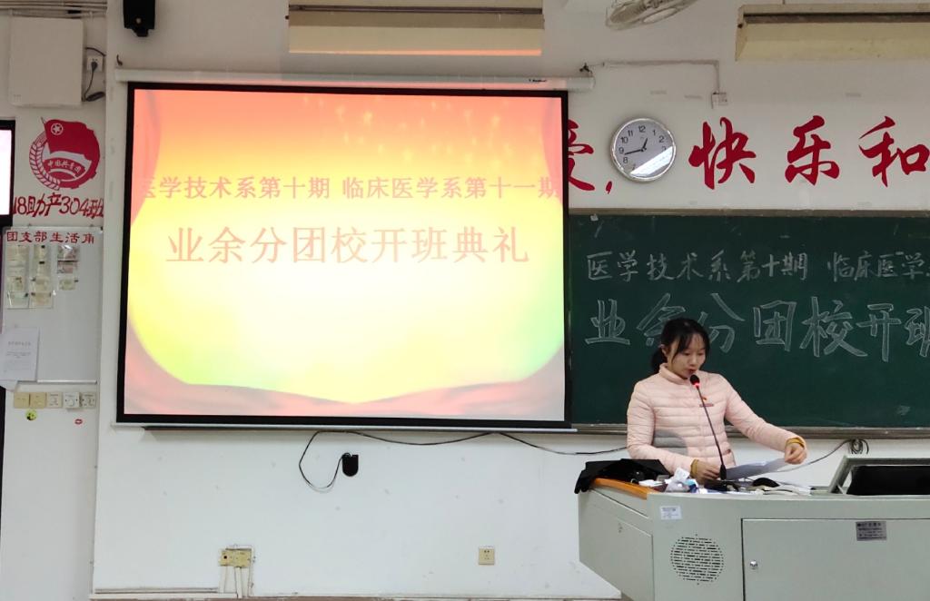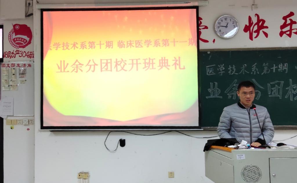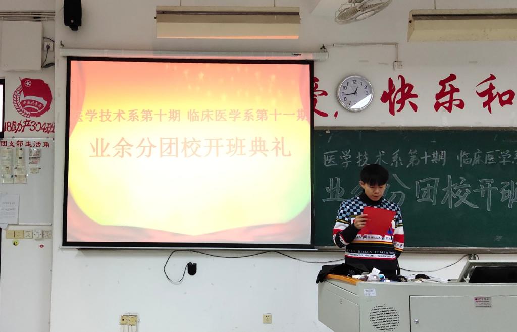為提高團組織的凝聚力和戰(zhàn)斗力,做好我系學生團員的發(fā)展工作。臨床醫(yī)學系第十一期業(yè)余分團校于12月20日中午在教學樓210舉行開班儀式。我系黨總支負責人陳俊穎副書記、陳潔副書記、醫(yī)學技術系黨總支負責人邱滾忠副書記、兩系團總支書記、副書記和輔導員老師們,以及兩系各委員及業(yè)余分團校的所有學員共同出席、參加了開班儀式。