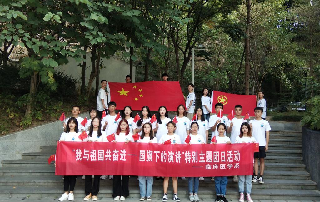 在雄壯的國(guó)歌聲中主題團(tuán)日活動(dòng)拉開序幕。優(yōu)秀團(tuán)員代表齊淑瑋同學(xué)以“我與祖國(guó)共奮進(jìn)”為主題,圍繞學(xué)習(xí)貫徹習(xí)近平總書記在紀(jì)念五四運(yùn)動(dòng)100周年大會(huì)上的重要講話精神,結(jié)合自身的學(xué)習(xí)、生活體會(huì)做了國(guó)旗下的演講,展現(xiàn)了青年大學(xué)生與祖國(guó)同呼吸、與時(shí)代共奮進(jìn)的愛國(guó)主義情懷和良好精神面貌。隨后,陳清清書記表示身為共青團(tuán)員的我們應(yīng)牢記使命,將共青團(tuán)員的優(yōu)秀精神貫徹于工作中。最后,團(tuán)員代表陳婧帶領(lǐng)全體團(tuán)員重溫入團(tuán)誓詞并齊唱團(tuán)歌,莊嚴(yán)的誓詞和激昂的團(tuán)歌提醒著在場(chǎng)的每一名團(tuán)員,不忘入團(tuán)初心,銘記團(tuán)員使命,履行團(tuán)員義務(wù)。