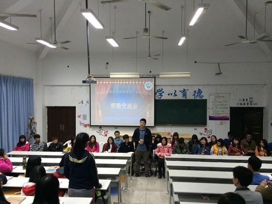 此次經(jīng)驗交流會通過各部門部長的經(jīng)驗交流以及互動提問,讓新生了解兩委會的構(gòu)成及各部門的分工和具體職責,讓他們在選擇競選職位的時候更有目的性。
