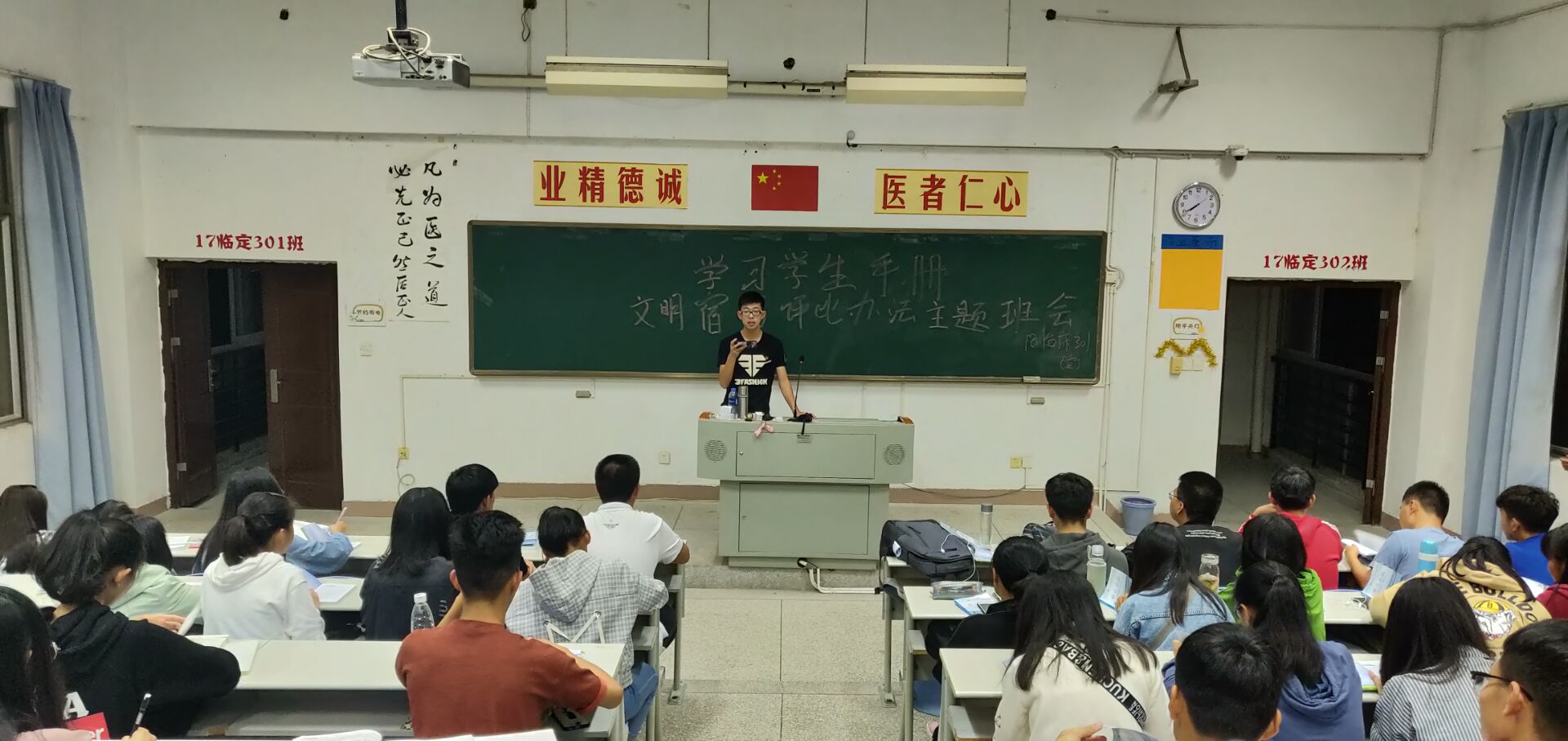 為加強(qiáng)我系的精神文明建設(shè),進(jìn)一步優(yōu)化育人環(huán)境,培養(yǎng)學(xué)生自我監(jiān)督、自我教育、自我管理的意識,營造一個良好的學(xué)習(xí)、生活環(huán)境,10月21-24日,臨床醫(yī)學(xué)系輔導(dǎo)員組織各班級開展宿舍文明教育的主題班會,重點學(xué)習(xí)了《福建衛(wèi)生職業(yè)技術(shù)學(xué)院文明宿舍評比辦法》。