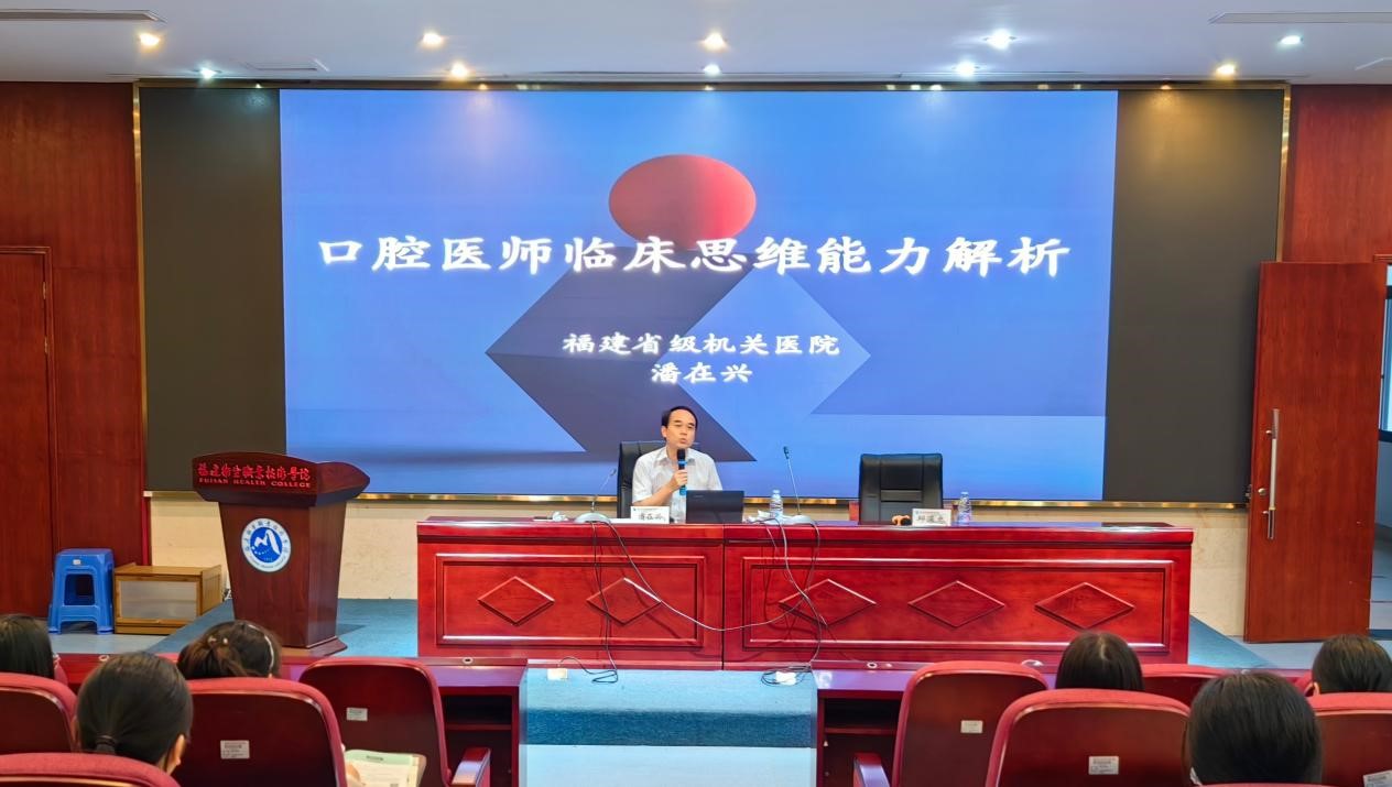 為提升學??谇粚I(yè)人才培養(yǎng)質量,提高專業(yè)能力建設,5月21日晚,應醫(yī)學院邀請,原福建省級機關醫(yī)院副院長、國際牙科醫(yī)師學院院士(ICD)、福建省口腔質量控制中心副主任潘在興教授為即將畢業(yè)的2020級口腔醫(yī)學專業(yè)學生進行了《口腔醫(yī)師臨床思辨能力解析》專題講座。會上,醫(yī)學院黨總支書記邱滾忠親切地為師生介紹了潘在興教授,對潘在興教授能來我院為20級口腔醫(yī)學專業(yè)學生舉辦講座,并對學院口腔醫(yī)學專業(yè)的建設和發(fā)展給予悉心的指導表示感謝!