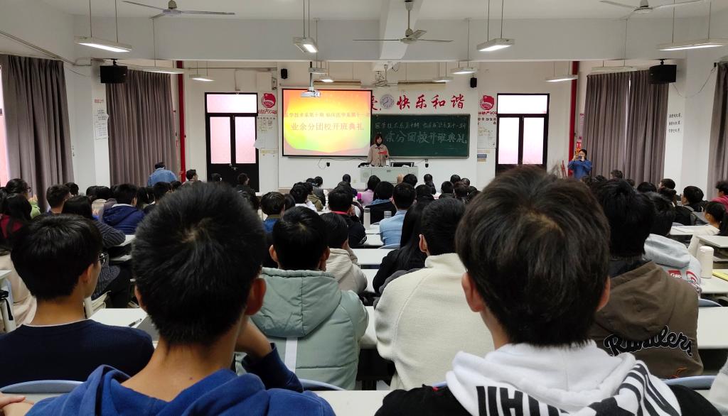 開班儀式在莊嚴的國歌聲中大會拉開序幕。臨床系團總支書記陳清清老師宣讀2019年業(yè)余分團校學(xué)院名單;學(xué)生代表熊敏同學(xué)發(fā)言,表示今后將嚴格遵守團校各項規(guī)定,積極配合團校工作,以身作則,努力起到帶頭作用。醫(yī)學(xué)技術(shù)系團總支書記曾慶才老師發(fā)言,向申請入團的同學(xué)們提出要以更高標準、更嚴要求加強自身思想道德建設(shè),為實現(xiàn)理想和目標而共同奮斗。