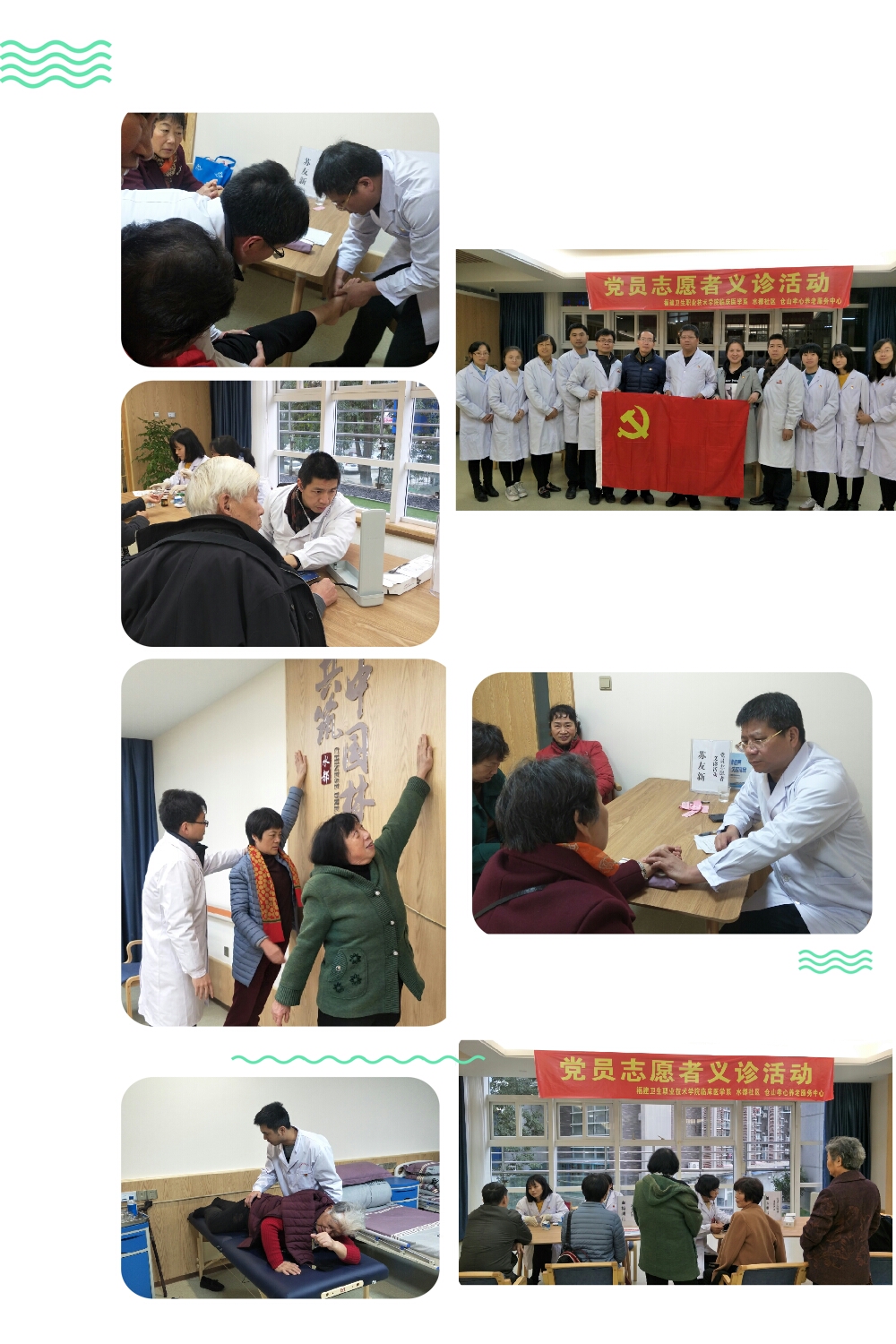 2018 年12月14日下午臨床醫(yī)學(xué)系黨總支組織第一、二、三黨支部11位黨員教職工前往金山街道水都社區(qū)居家養(yǎng)老服務(wù)中心開展黨員志愿義診活動(dòng)暨主題黨日活動(dòng)。學(xué)院黨委副書記、院長蘇友新同志以一名普通黨員身份參加活動(dòng)。