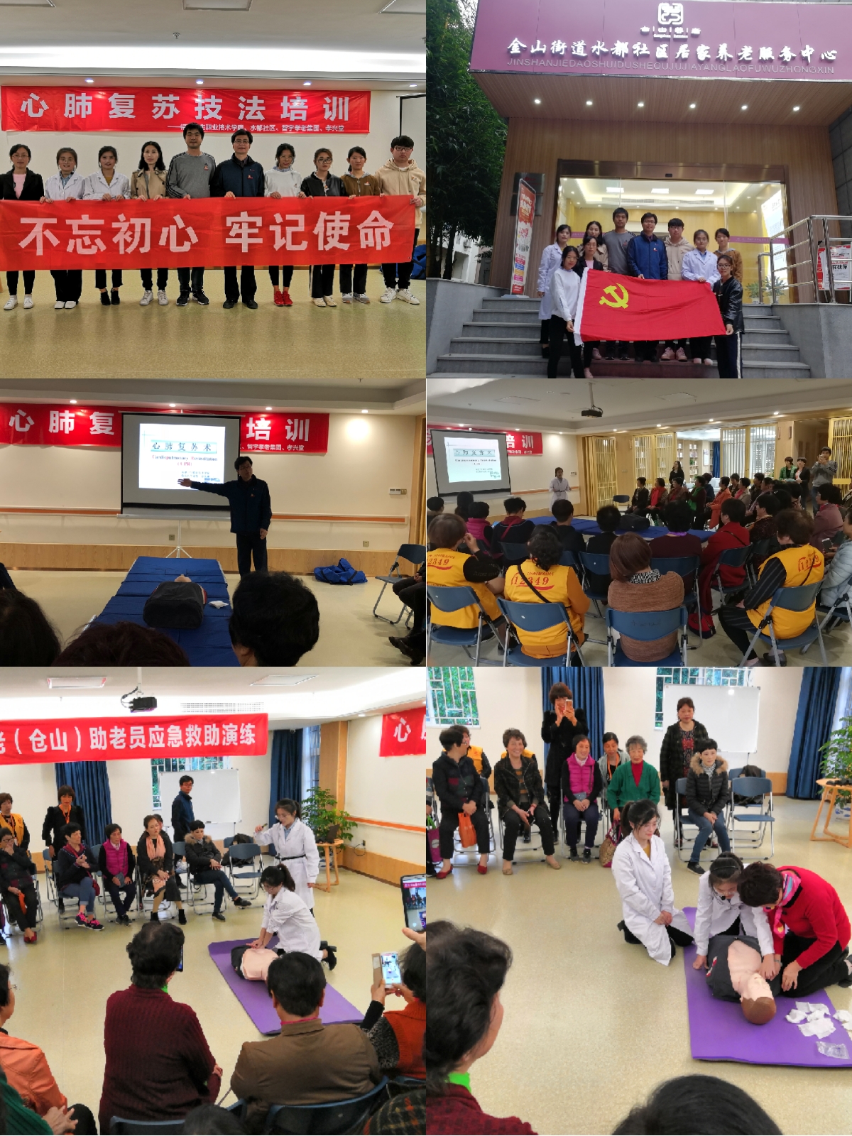 為深入學習貫徹習近平新時代中國特色社會主義思想和黨的十九大精神,進一步深化“不忘初心、牢記使命”主題教育,臨床醫(yī)學系第三黨支部組織黨員教師6名與學生入黨積極分子4名于11月22日下午在福州市金山街道水都社區(qū)居家養(yǎng)老服務中心(下稱“中心”)開展“分秒必爭—心肺復蘇術培訓”的主題黨日活動。