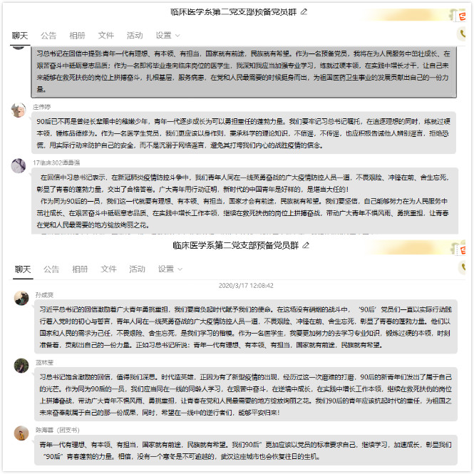 為深入學(xué)習(xí)“習(xí)近平回信勉勵北京大學(xué)援鄂醫(yī)療隊全體“90后”黨員,讓青春在黨和人民最需要的地方綻放絢麗之花”講話,3月17日上午,臨床醫(yī)學(xué)系第二黨支部全體黨員、入黨積極分子開展了線上學(xué)習(xí)暨黨日活動,學(xué)習(xí)活動由支部書記高長花同志主持。