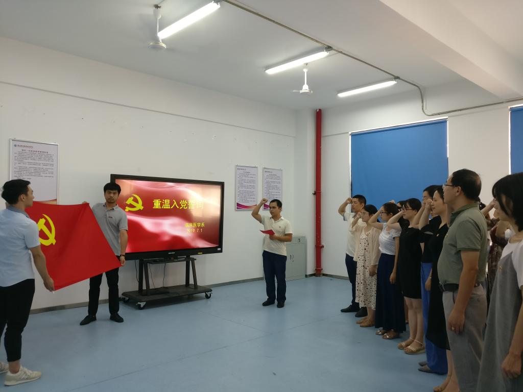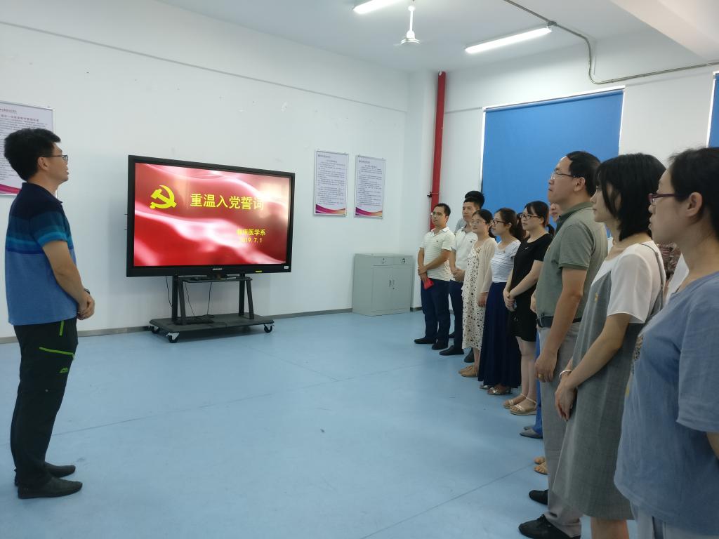 2019年7月1日,在中國(guó)共產(chǎn)黨成立98周年之際,為進(jìn)一步教育引導(dǎo)全體黨員不忘初心、牢記使命,臨床醫(yī)學(xué)系第一、第二、第三黨支部在實(shí)訓(xùn)樓401舉辦“重溫入黨誓詞,牢記初心使命”主題黨日活動(dòng)。