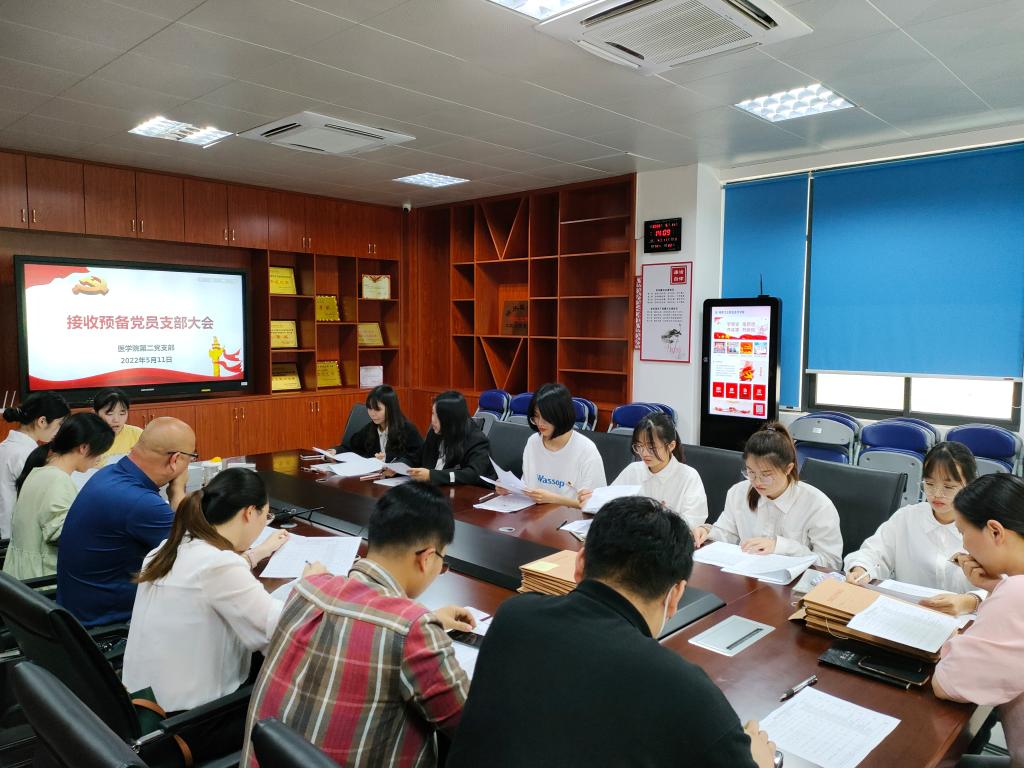 5月11日,醫(yī)學(xué)院第二黨支部在實訓(xùn)樓311召開接收預(yù)備黨員支部大會。會議由支部書記高長花主持,支部正式黨員9名,實到7名,因事請假2名。