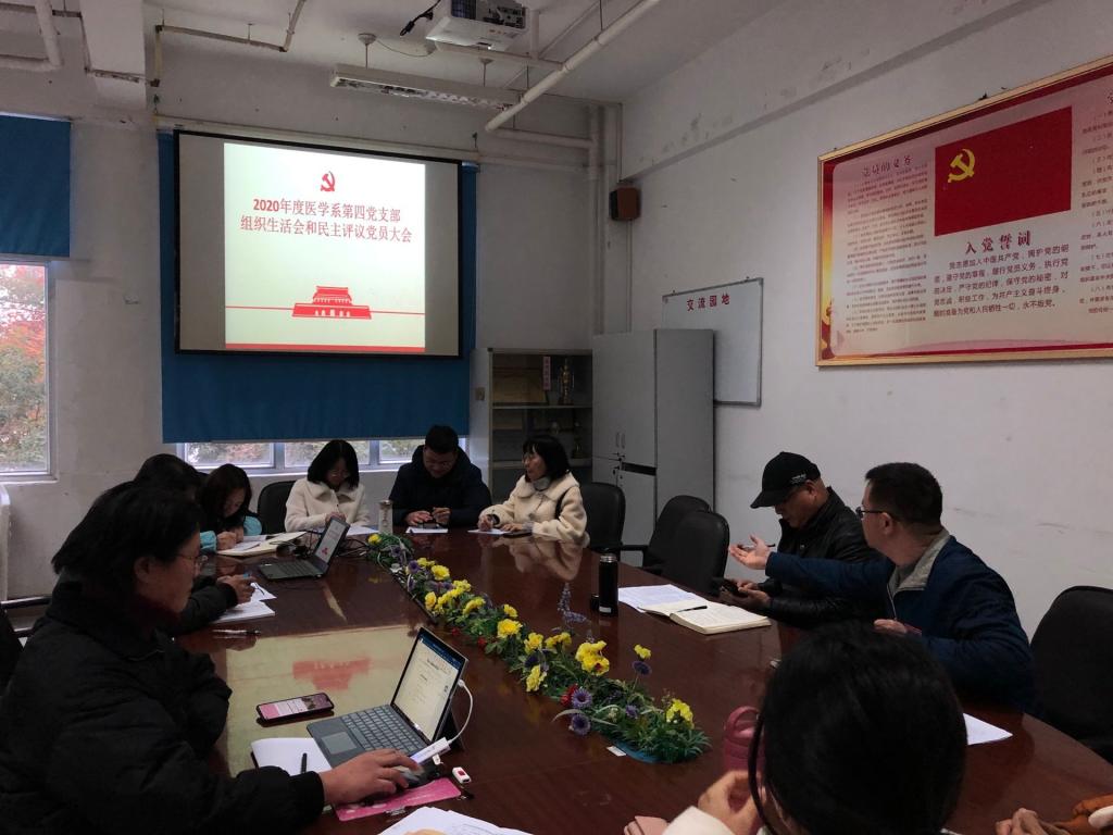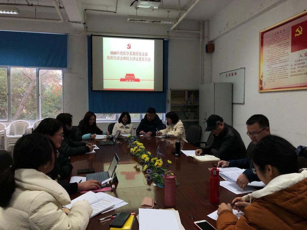 為鞏固深化“不忘初心、牢記使命”主題教育成果,提升基層黨組織政治功能和組織力,醫(yī)學(xué)系第四支部按照學(xué)院黨委和系黨總支的工作部署,于2021年1月12日下午在醫(yī)學(xué)基礎(chǔ)部215會議室召開組織生活會和民主評議黨員工作。醫(yī)學(xué)系黨總支書記邱滾忠列席,會議由黨支部書記鄧元榮主持。