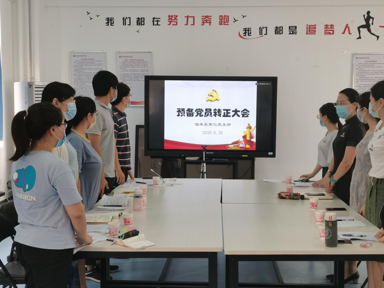 2020年6月28日下午,臨床醫(yī)學系第三黨支部采用線上結(jié)合線下的方式召開預(yù)備黨員轉(zhuǎn)正大會。會議由支部書記陳銘主持,支部11名正式黨員全部到會。