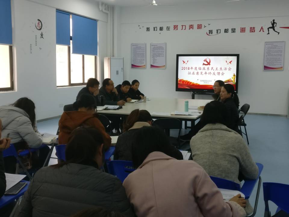 2019年12月2日,臨床醫(yī)學(xué)系黨總支在實(shí)訓(xùn)樓401會(huì)議室召開2018年度民主生活會(huì)征求意見年終反饋會(huì)。全系教職工參加了本次反饋會(huì)。會(huì)議由黨總支負(fù)責(zé)人陳俊穎主持。