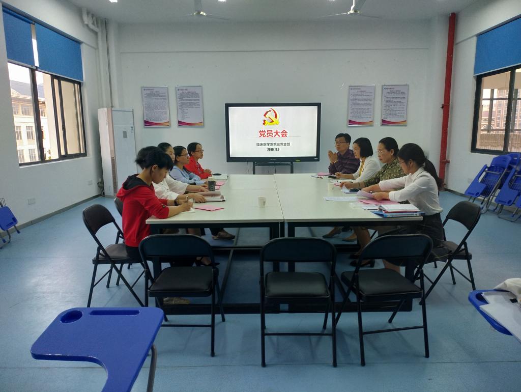 根據(jù)“不忘初心、牢記使命”主題教育工作部署,為推動(dòng)教師黨支部“雙帶頭人”建設(shè)工作,臨床醫(yī)學(xué)系第三黨支部于2019年11月6日下午召開(kāi)黨員大會(huì),開(kāi)展支部委員增補(bǔ)工作。支部應(yīng)到正式黨員10名,實(shí)到9名,1名同志因公出差缺席,有選舉權(quán)的黨員到會(huì)人數(shù)符合法定人數(shù)。
