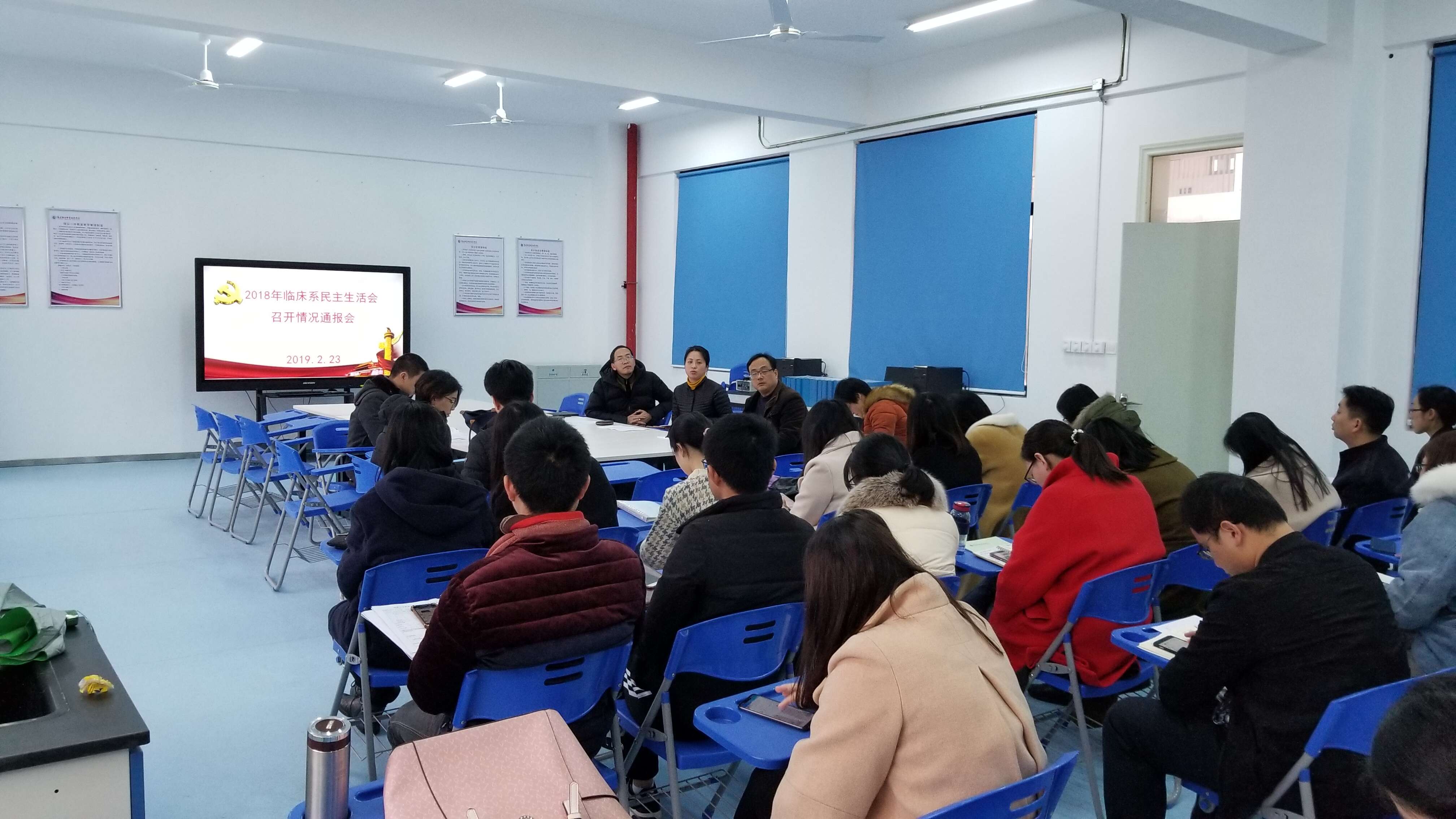 2月23日,臨床醫(yī)學(xué)系召開全體教職工大會,對2018年度臨床醫(yī)學(xué)系黨員領(lǐng)導(dǎo)干部民主生活會的情況進行通報,會議由陳俊穎副書記主持。