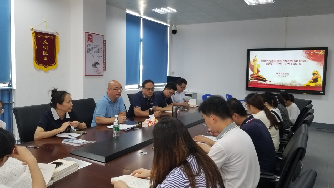 6月17日,醫(yī)學(xué)系在實訓(xùn)樓311召開黨總支理論學(xué)習(xí)中心組(擴大)會議暨黨史學(xué)習(xí)教育第五次專題讀書班,學(xué)習(xí)《中國共產(chǎn)黨歷史》、《中國共產(chǎn)黨的九十年》以及《《解放戰(zhàn)爭》等內(nèi)容。
