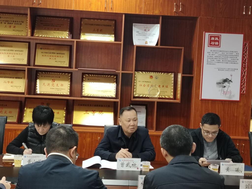 曾武祈在聽取匯報后,對醫(yī)學院取得的階段性成績給予了充分肯定。同時,還提出了明確要求:一要持續(xù)強化黨的創(chuàng)新理論武裝;二要深入實施新時代“堡壘工程”;三要始終站穩(wěn)師生群眾立場;四要抓好深入貫徹中央八項規(guī)定精神學習教育和年度重點工作落實。