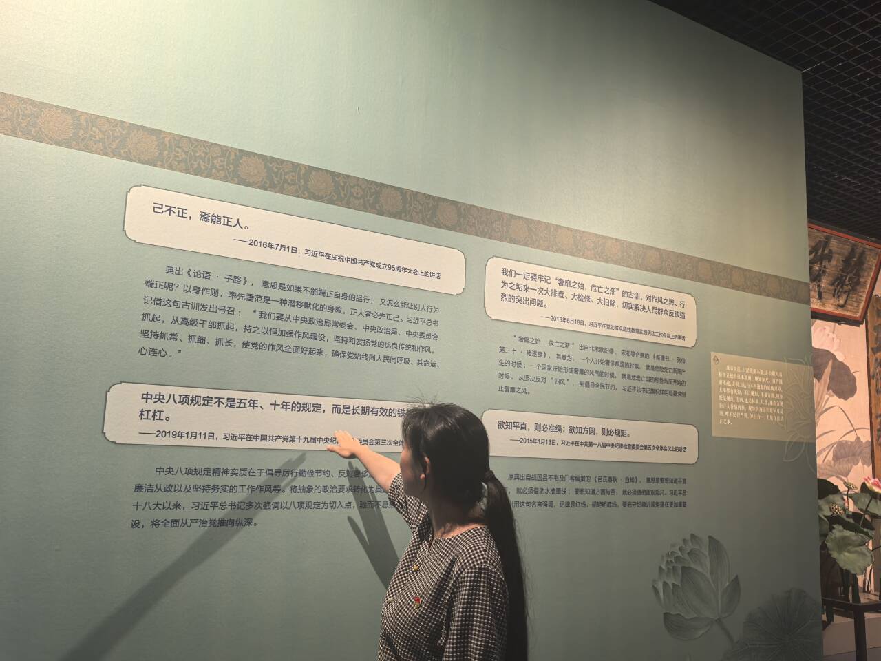 在參觀過程中,黨員們認(rèn)真聆聽講解,深入了解每件文物背后蘊(yùn)含的廉潔故事。從“蓮之美”展區(qū)的自然之美,到“蓮之韻”展區(qū)的詩詞書畫,再到“廉之品”展區(qū)的廉潔精神實(shí)踐,黨員們深刻感受到廉潔文化的歷史傳承與時(shí)代意義。特別是“廉之品”展區(qū),通過展示福建歷史人物如薛令之、朱熹、林則徐等人的廉潔事跡,引導(dǎo)黨員們從傳統(tǒng)文化中汲取廉潔力量。