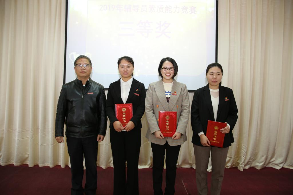 此次決賽,分為網(wǎng)文寫作、案例分析和理論宣講三個(gè)項(xiàng)目。在比賽現(xiàn)場(chǎng),我系的兩位輔導(dǎo)員能夠運(yùn)用自己扎實(shí)的工作基礎(chǔ),對(duì)學(xué)生問題進(jìn)行全面分析、精準(zhǔn)定位;在理論宣講環(huán)境,輔導(dǎo)員聲情并茂,運(yùn)用生動(dòng)事例,侃侃而談。經(jīng)過激烈的角逐,劉明鑫老師榮獲2019年學(xué)院輔導(dǎo)員素質(zhì)能力競(jìng)賽一等獎(jiǎng)(第二名),高長(zhǎng)花老師榮獲三等獎(jiǎng)(第六名)的好成績(jī)。