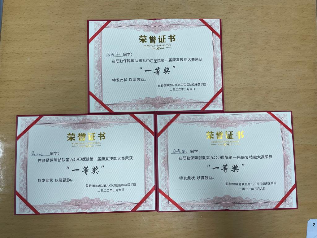 2022年3月6日,聯(lián)勤保障部隊(duì)第九〇〇醫(yī)院第一屆康復(fù)技能大賽圓滿結(jié)束,我院19級(jí)康復(fù)治療技術(shù)專業(yè)張雨芯、鄭慧敏、蔣致遠(yuǎn)3名學(xué)生榮獲團(tuán)體一等獎(jiǎng)。