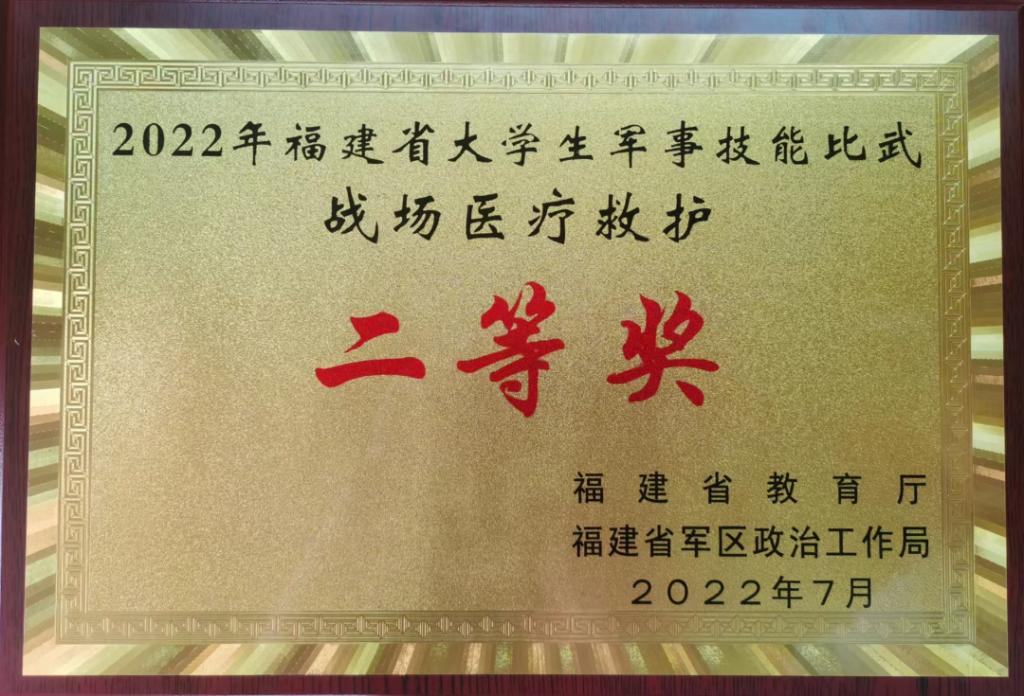 7月15日至17日,由福建省教育廳、福建省軍區(qū)政治工作局主辦,仰恩大學(xué)承辦的2022年福建省大學(xué)生軍事技能比武活動(dòng)在泉州市仰恩大學(xué)舉行,全省本科與高職院校共有58支隊(duì)伍參賽。由我校醫(yī)學(xué)院21臨床302班吳泓瑾、21口腔302班楊哲鵬、21康復(fù)302班蘇輝越、藍(lán)金坤、任云楓和21康復(fù)303班吳曉莉6名學(xué)生組成的參賽隊(duì)伍,通過積極的備戰(zhàn),獲得2022年福建省大學(xué)生軍事技能比武戰(zhàn)場醫(yī)療救護(hù)項(xiàng)目二等獎(jiǎng)的好成績,位列參賽高職院校第一。