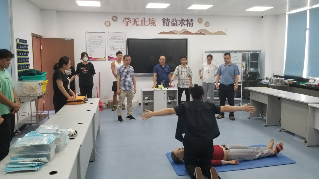 本次競賽得到學(xué)校相關(guān)部門的大力支持和組織領(lǐng)導(dǎo)。醫(yī)學(xué)院高度重視,指派第一黨支部的內(nèi)、外科教研室黨員教師承擔(dān)集訓(xùn)任務(wù),外科教研室劉智強(qiáng)老師擔(dān)任領(lǐng)隊(duì),組建包括兩名退伍大學(xué)生在內(nèi)的8名學(xué)生參加軍事技能比武中的戰(zhàn)場醫(yī)療救護(hù)、手榴彈定點(diǎn)投擲和識圖用圖三個(gè)項(xiàng)目。備戰(zhàn)師生克服時(shí)間緊、任務(wù)重的困難,充分利用課余時(shí)間和暑假進(jìn)行訓(xùn)練。出征前,醫(yī)學(xué)院黨政領(lǐng)導(dǎo)對參賽師生進(jìn)行了賽前動(dòng)員,觀看操作過程并現(xiàn)場指導(dǎo),鼓勵(lì)參賽學(xué)生樹立必勝信心,注重操作細(xì)節(jié),放下心理包袱,大膽參賽。