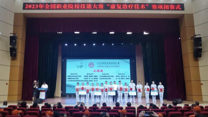 全國(guó)職業(yè)院校技能大賽2023年首次開設(shè)了高職組康復(fù)治療技術(shù)賽項(xiàng),賽項(xiàng)內(nèi)容包括理論知識(shí)競(jìng)賽和技能操作競(jìng)賽兩部分。理論知識(shí)競(jìng)賽采取計(jì)算機(jī)考試形式,旨在考核參賽選手的專業(yè)知識(shí)應(yīng)用能力、臨床思維能力、分析能力和解決問題能力。在技能操作競(jìng)賽中,三位選手頂住壓力,沉著應(yīng)戰(zhàn),克服末位出場(chǎng)的劣勢(shì),最終獲得團(tuán)體三等獎(jiǎng),充分展現(xiàn)康復(fù)治療技術(shù)專業(yè)教學(xué)成果及人才培養(yǎng)質(zhì)量。