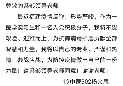9月10日以來,新冠肺炎疫情突襲福建,三十余名醫(yī)學系實習生請愿奔赴 “疫”線,他們當中閃耀著這樣一群可愛的身影,他們不是黨員,卻和黨員一樣敢于擔當、沖鋒在前,用實際行動踐行著初心使命,用無私無畏表明入黨的決心,向黨組織作最深刻的思想?yún)R報。他們就是醫(yī)學系入黨積極分子們。