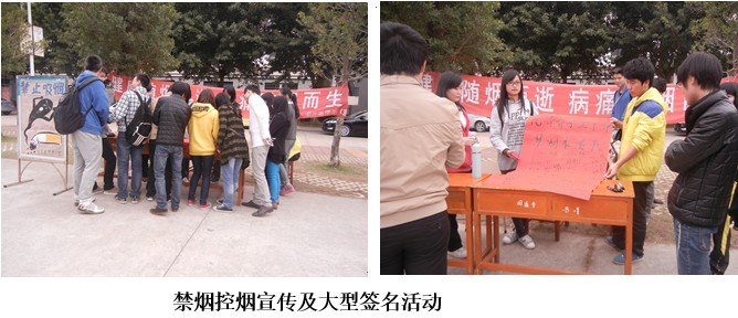 為營(yíng)造健康清新的宿舍及校園環(huán)境,進(jìn)一步杜絕吸煙現(xiàn)象,11月26日12:30,臨床醫(yī)學(xué)系兩委會(huì)在一餐門口前開展了“健康隨煙而逝病痛隨煙而生”校園禁煙控?zé)熜麄骷按笮秃灻顒?dòng)。本次活動(dòng)得到了院系領(lǐng)導(dǎo)、老師和同學(xué)們的關(guān)注,他們都紛紛駐足在宣傳橫幅上簽字,以表達(dá)對(duì)禁煙控?zé)煿ぷ鞯拇罅χС帧M瑫r(shí),也希望通過(guò)這一活動(dòng)讓每一位同學(xué)都能夠自覺(jué)規(guī)范行為,堅(jiān)決做到禁煙控?zé)煟瑸閯?chuàng)建無(wú)煙校園貢獻(xiàn)自己的一份力量。