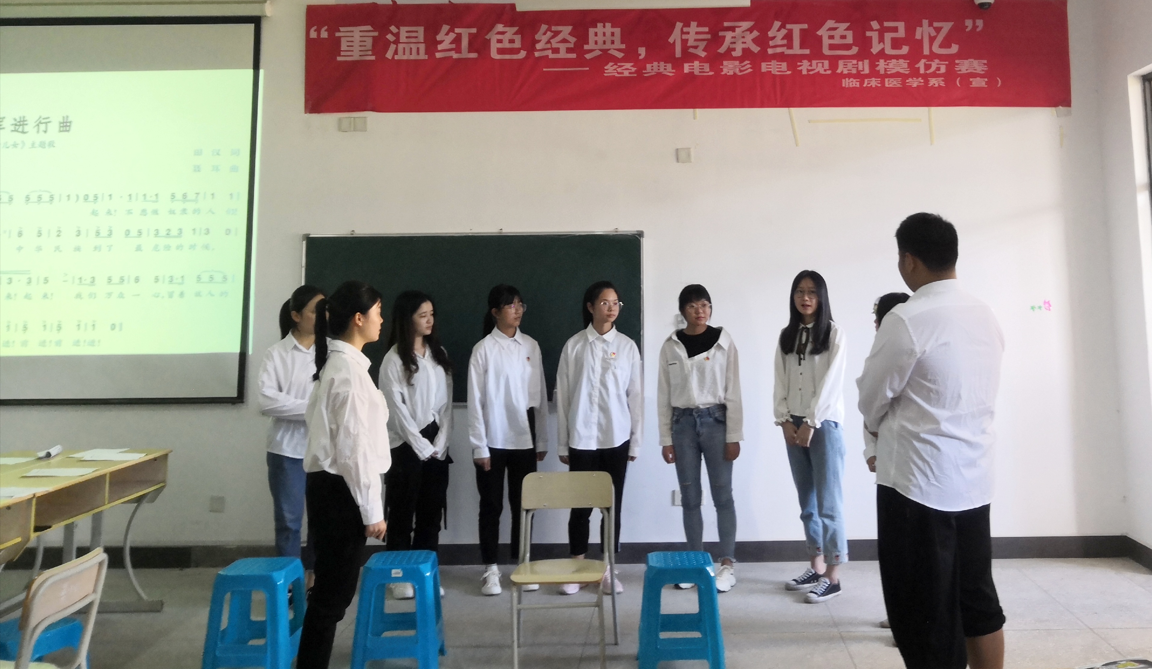 為慶祝中華人民共和國成立70周年和五四運動100周年,加深同學(xué)們對紅色文化的理解、激發(fā)同學(xué)們的愛國情懷,營造出積極向上、健康文明的校園文化氣氛,臨床醫(yī)學(xué)系于2019年5月30日在實訓(xùn)樓208舉辦重溫紅色經(jīng)典,傳承紅色記憶——臨床醫(yī)學(xué)系舉辦紅色經(jīng)典電影模仿大賽。系團(tuán)總支副書記謝林輝、輔導(dǎo)員劉明鑫及2018級全體團(tuán)學(xué)干部擔(dān)任了此次活動的評委。