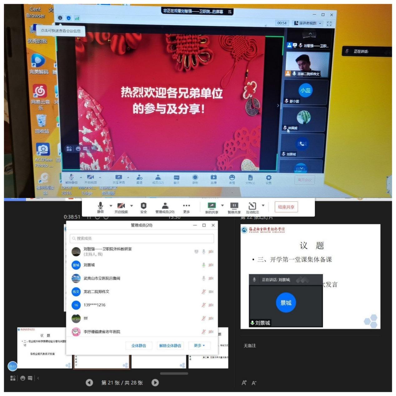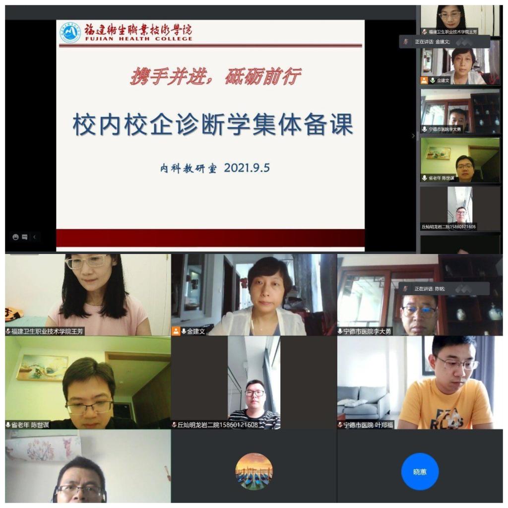 為嚴(yán)把教學(xué)質(zhì)量關(guān),搭建校內(nèi)校企橋梁,共同提升教學(xué)質(zhì)量,做好教學(xué)同質(zhì)化管理,2021年9月5日下午3點(diǎn),醫(yī)學(xué)系內(nèi)外科教研室的老師們聯(lián)同六所校企合作醫(yī)院,即福建省老年醫(yī)院、龍巖市第二醫(yī)院、安溪縣醫(yī)院、寧德師范學(xué)院附屬寧德市醫(yī)院、邵武市立醫(yī)院以及武夷山市立醫(yī)院在線上通過騰訊會(huì)議開展了集體備課。此次會(huì)議分為診斷學(xué)、外科學(xué)兩個(gè)分會(huì)場。